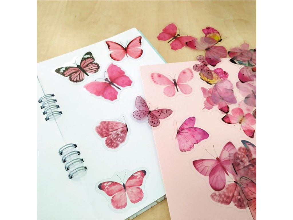 Přidejte do svého tvoření lehkost a hravost s těmito průhlednými fóliovými samolepkami s motýly. Každý motýl v sadě má jiný tvar, velikost a barevnost, takže vaše kompozice budou působit živě a pestrě.