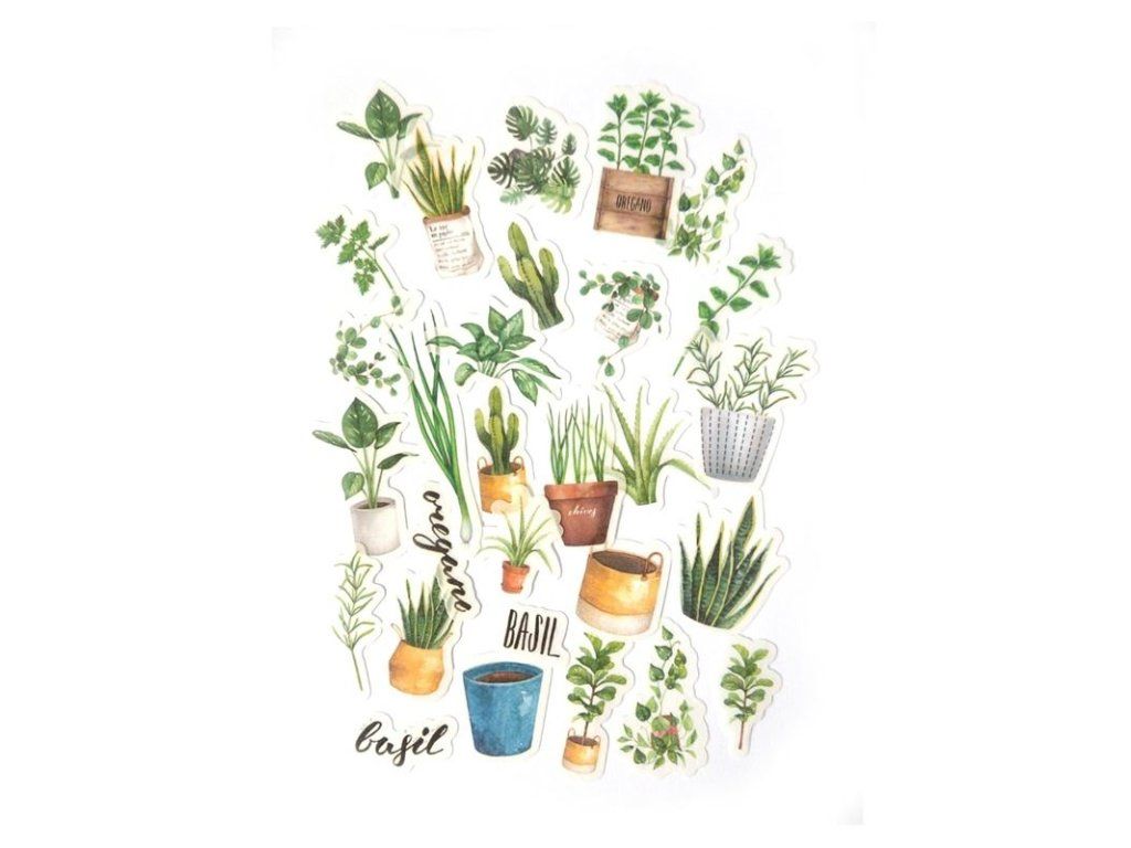 Dekorativní papírové samolepky – Zelené rostliny, 39 ks