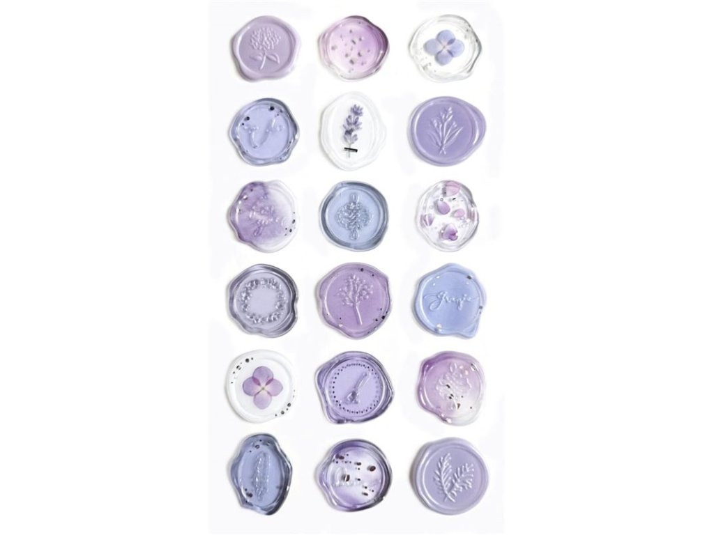 📦 Obsah balení: 18 ks samolepicích pečetí v různých odstínech fialové