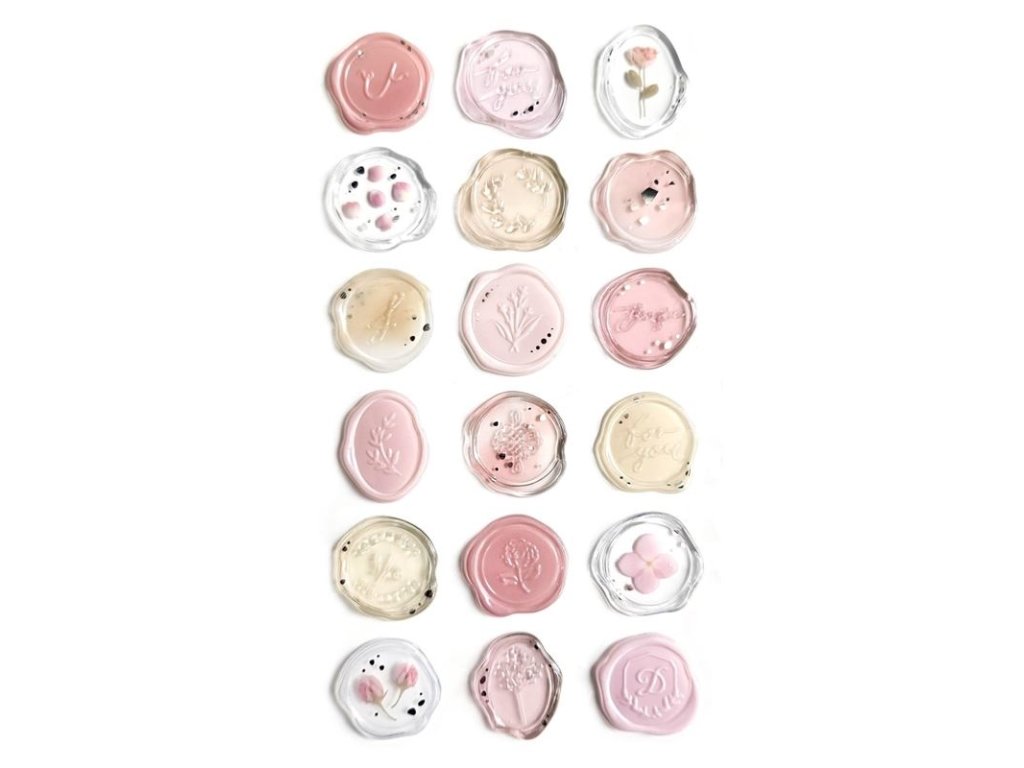 📦 Obsah balení: 18 ks samolepicích pečetí v různých odstínech růžové