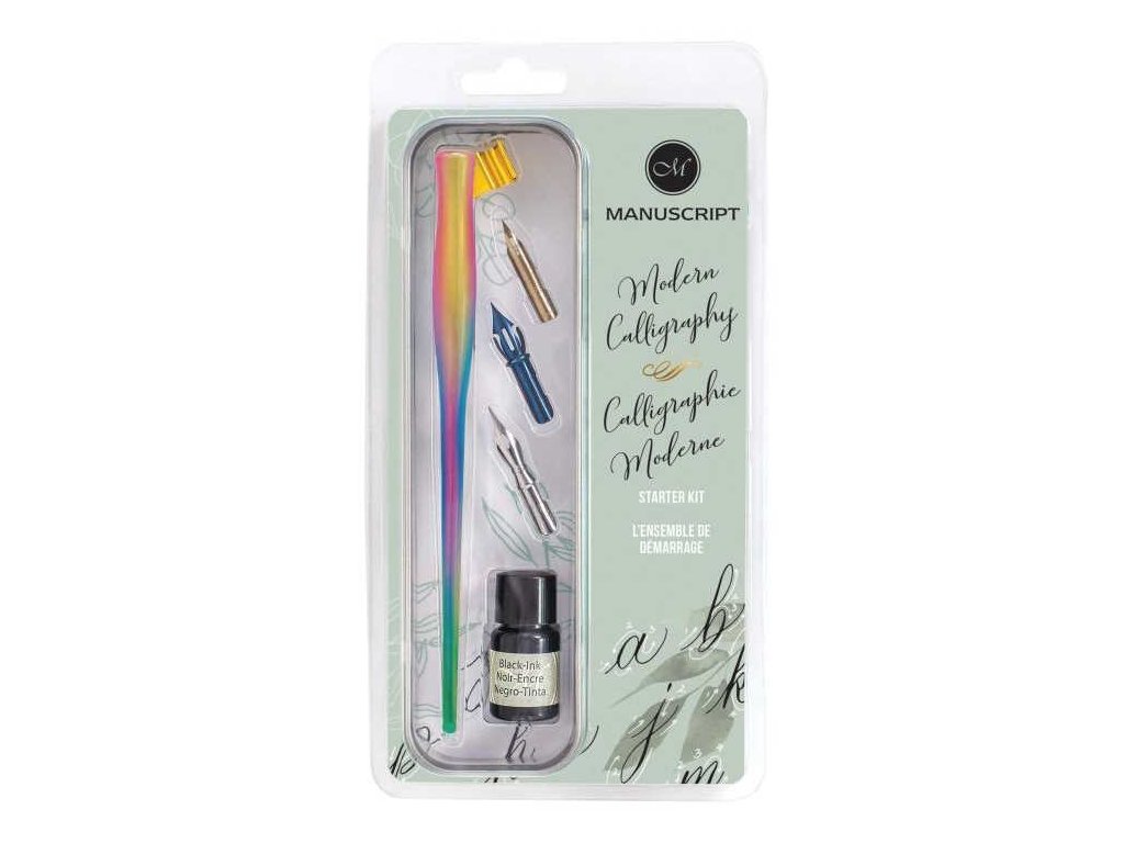 Kaligrafická sada Manuscript – duhová násadka, perka a inkoust