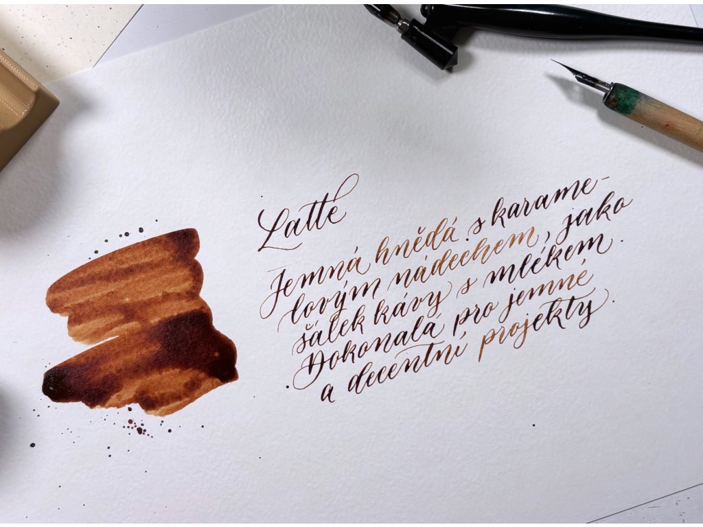"Když vezmu tuš do ruky a ponořím hrot pera do lahvičky, je to pro mě malý rituál. Píše se s ní neuvěřitelně krásně a plynule – tahy jsou syté, stabilní a přitom působí lehce. Tuš je vhodná i pro úplného kaligrafického začátečníka.