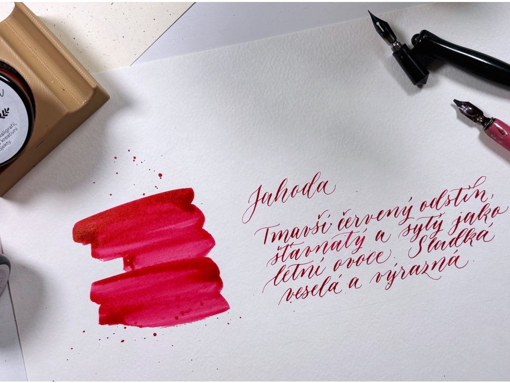 "Když vezmu tuš do ruky a ponořím hrot pera do lahvičky, je to pro mě malý rituál. Píše se s ní neuvěřitelně krásně a plynule – tahy jsou syté, stabilní a přitom působí lehce. Tuš je vhodná i pro úplného kaligrafického začátečníka.