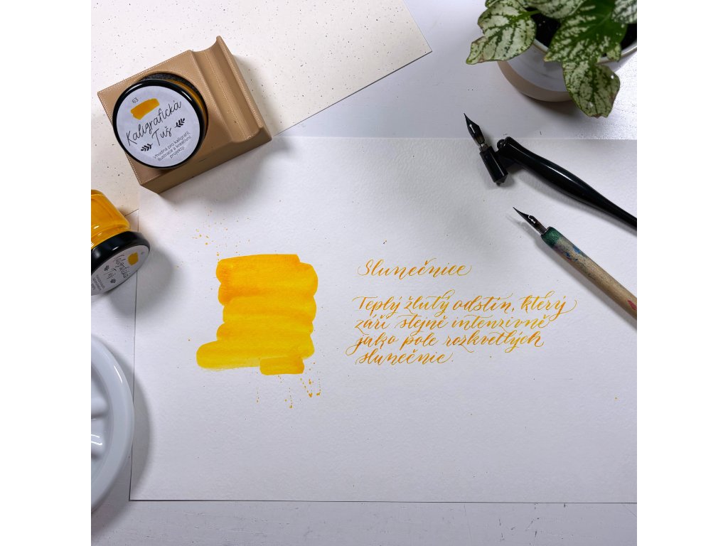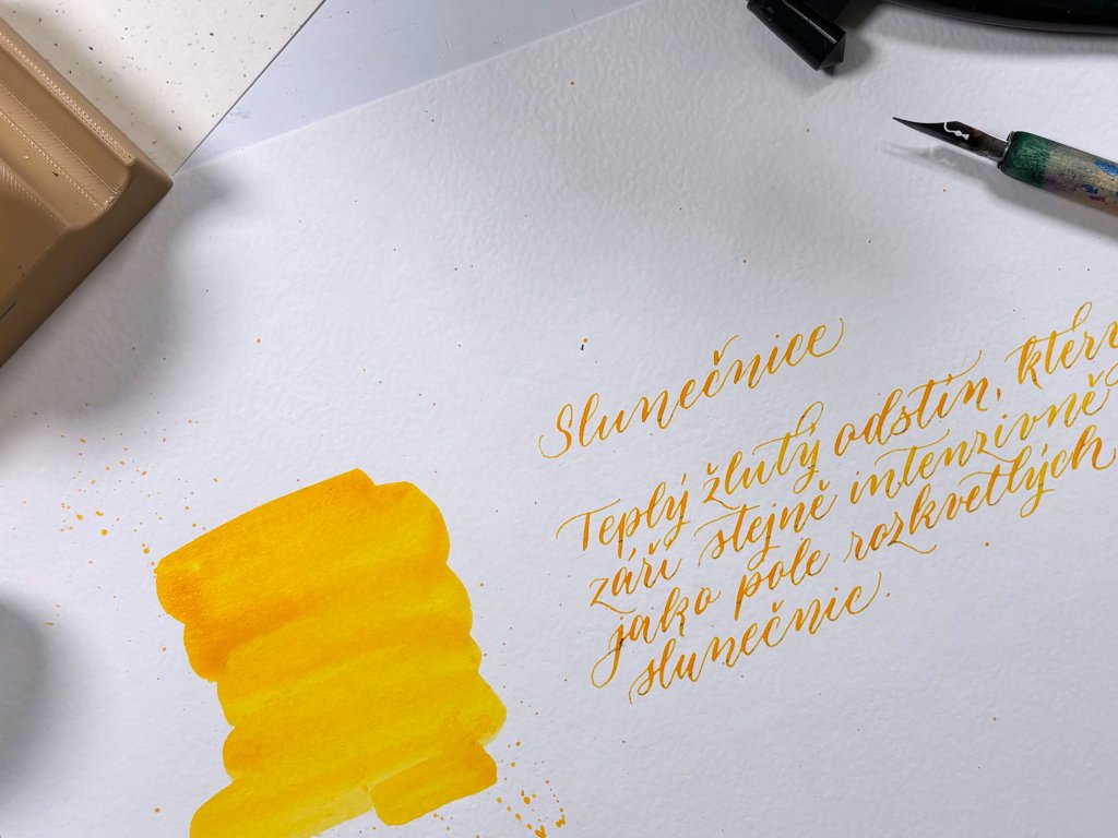 "Když vezmu tuš do ruky a ponořím hrot pera do lahvičky, je to pro mě malý rituál. Píše se s ní neuvěřitelně krásně a plynule – tahy jsou syté, stabilní a přitom působí lehce. Tuš je vhodná i pro úplného kaligrafického začátečníka.