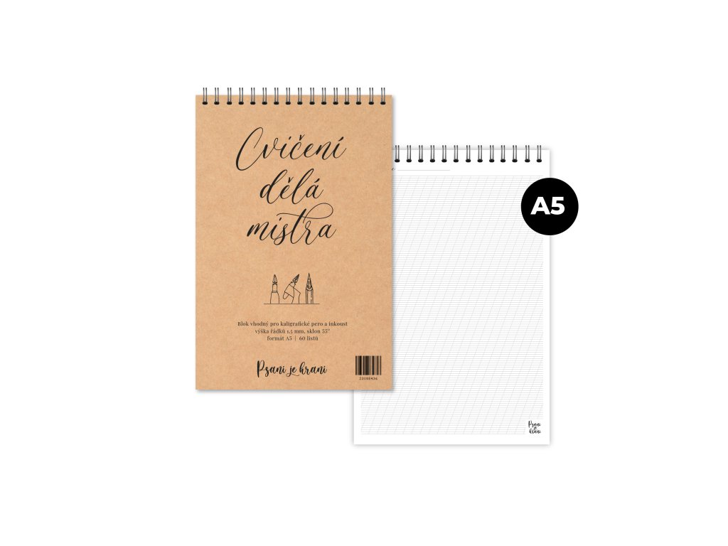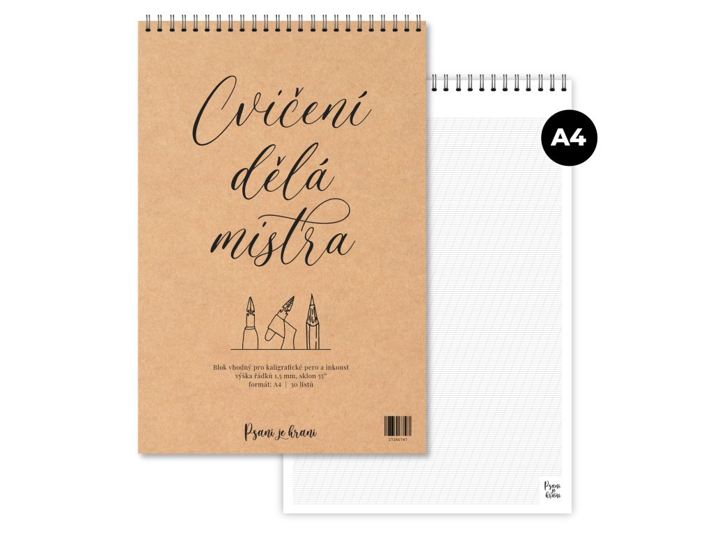 Podtitul Cvičení dělá mistra není náhoda – pravidelný trénink je to, co kaligrafii opravdu posouvá.