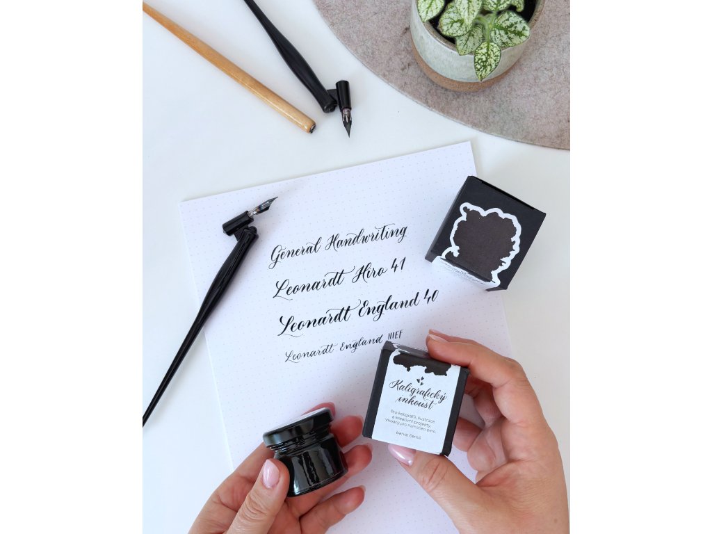 Jedinečný kaligrafický inkoust s bohatou pigmentací, který ocení každý milovník klasického písma i moderní kaligrafie. Inkoust má sytou, hlubokou černou barvu, rychle schne a díky své receptuře nabízí i vysokou odolnost vůči vodě.