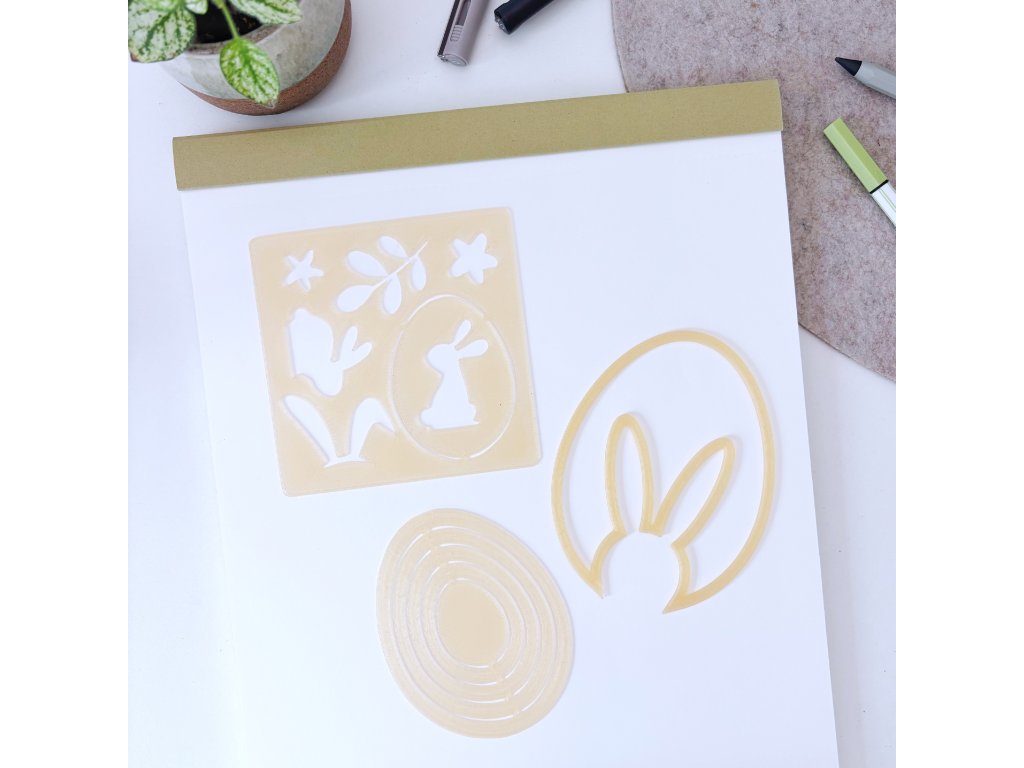 Tato kreativní šablona s motivem kraslice vzniká přímo u nás v 3D dílně. Stejně jako ostatní šablony ji tiskneme na 3D tiskárnách z transparentního materiálu, díky kterému podklad krásně prosvítá a práce se šablonou je ještě přesnější.