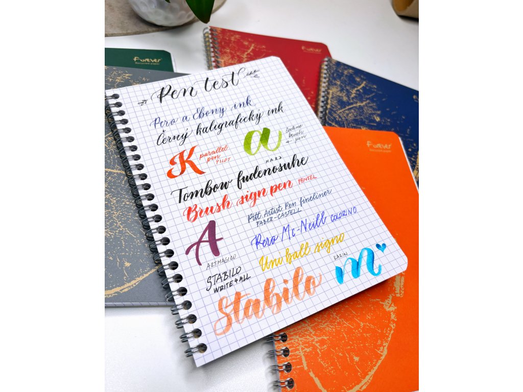 Díky kvalitnímu papíru se hodí i na kaligrafii, psaní brushpeny nebo inkoustem, takže využití najdou studenti, profesionálové i kreativci.