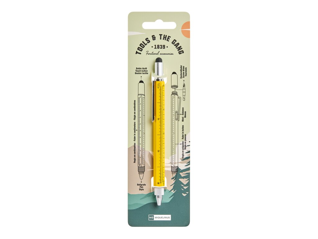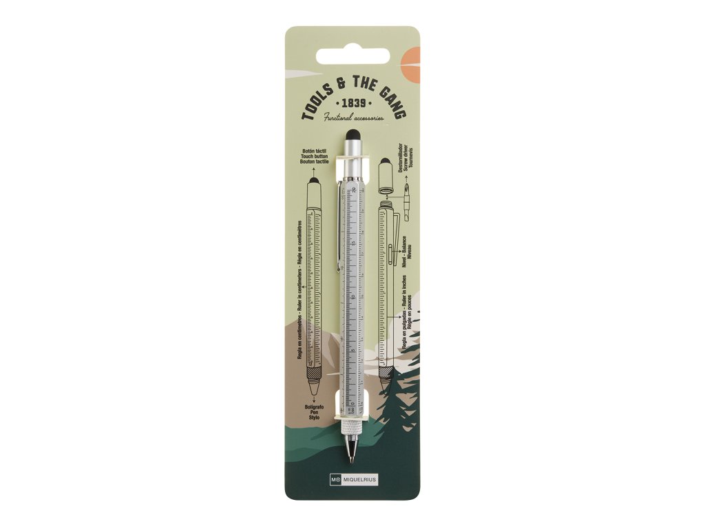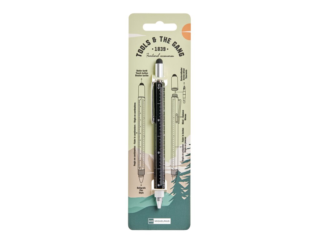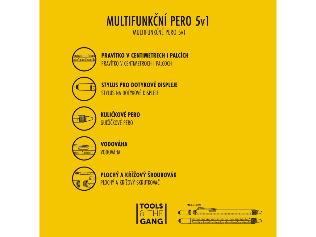 Toto pero zvládne víc než jen psaní: kromě klasické modré kuličkové náplně s hladkým olejovým inkoustem v sobě ukrývá i pravítko (v centimetrech i palcích), vodováhu, plochý a křížový šroubovák a dokonce dotykový stylus pro smartphony a tablety. Vše, co potřebujete, doslova v jedné ruce.