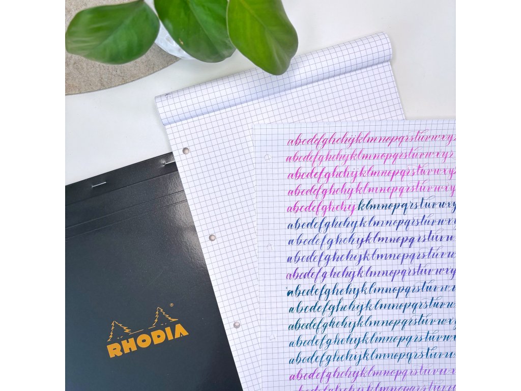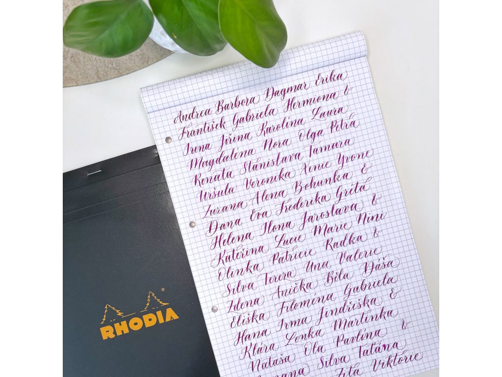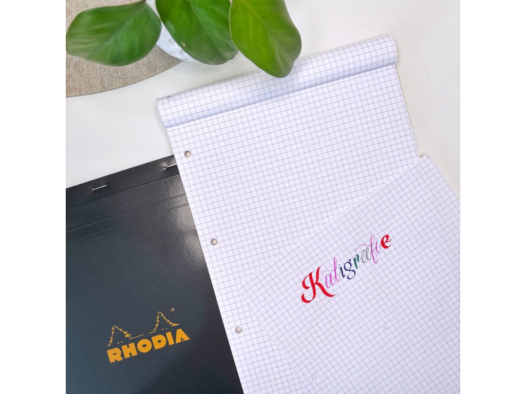 Pro mě je tenhle blok naprostá ikona. Když jsem před lety začala objevovat moderní kaligrafii a sledovala zahraniční kaligrafy na YouTube a sociálních sítích, všichni používali právě bloky Rhodia. Tehdy byly u nás nedostupné a pro mě nedosažitelné. Dnes, když do nich píšu, si na to vždy vzpomenu – a jsem nadšená, že je mohu nabídnout i u nás na e-shopu. Jsou perfektní na trénink kaligrafie inkoustem i brushpeny.