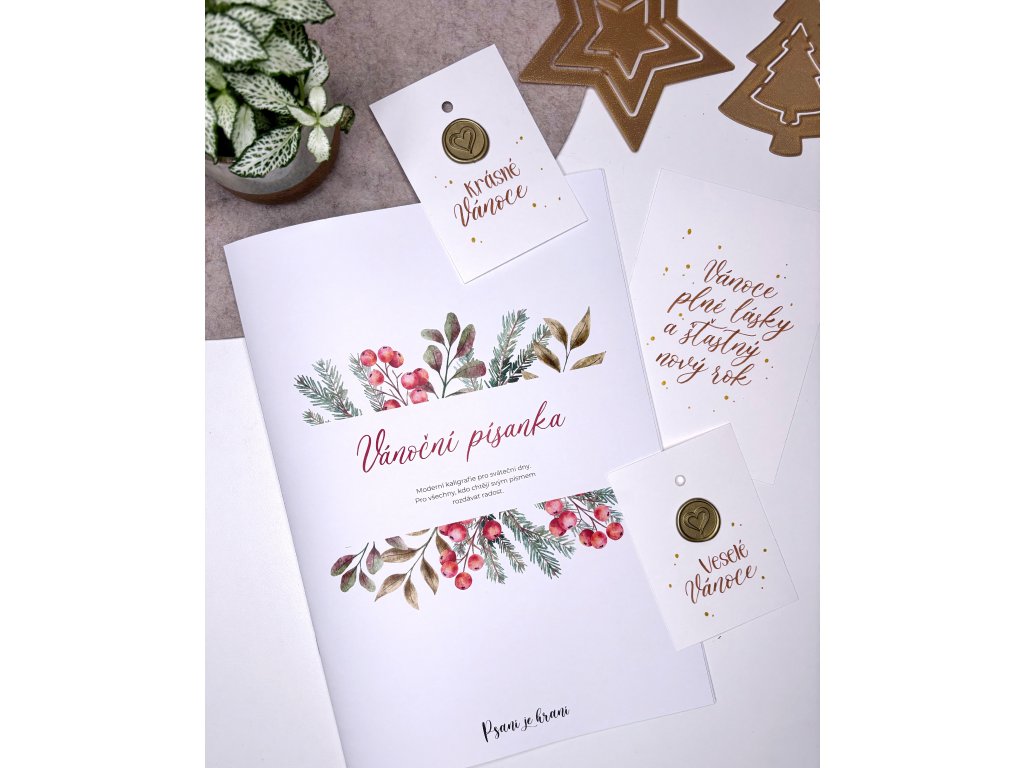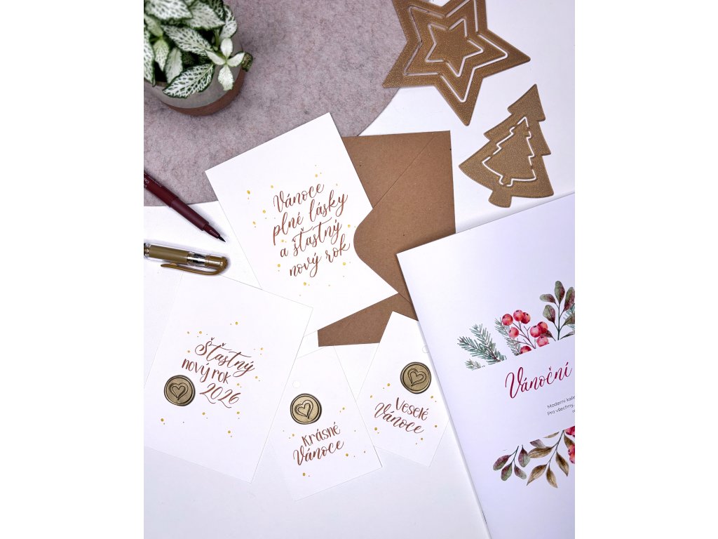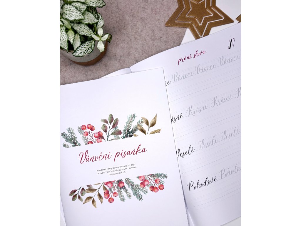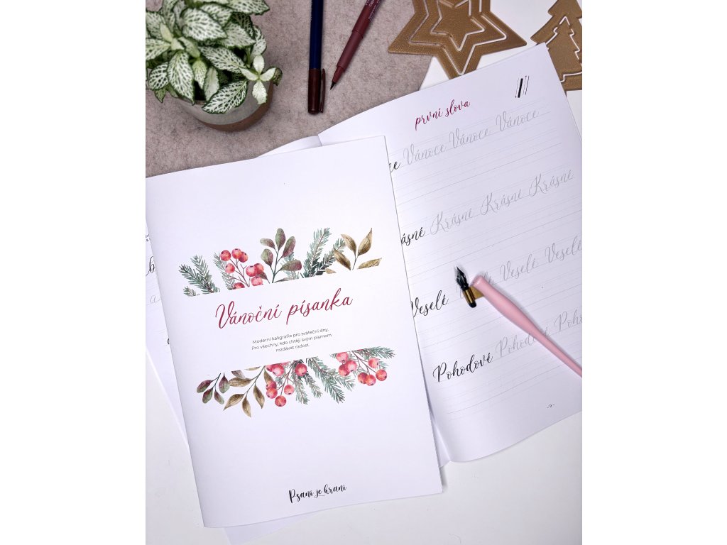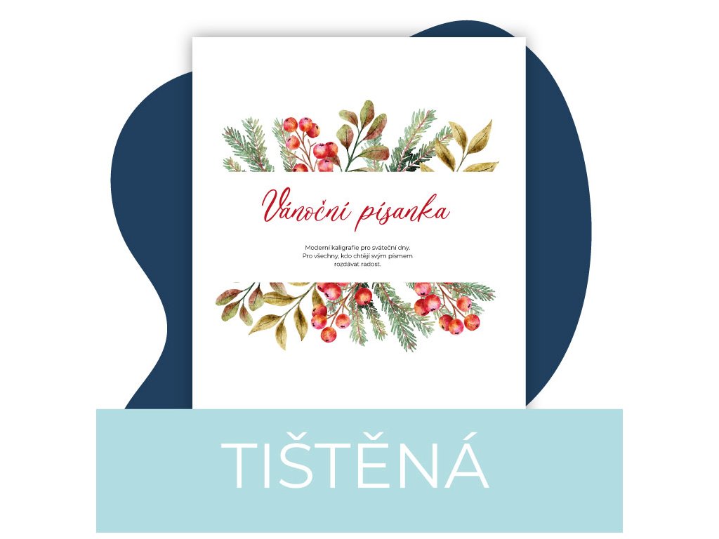 Tuto písanku používám i na svých speciálních vánočních kurzech moderní kaligrafie – a protože se na ně všichni nedostanou, přináším ji i v samostatné podobě pro váš domov, tvořicí kout i vánoční dílnu.