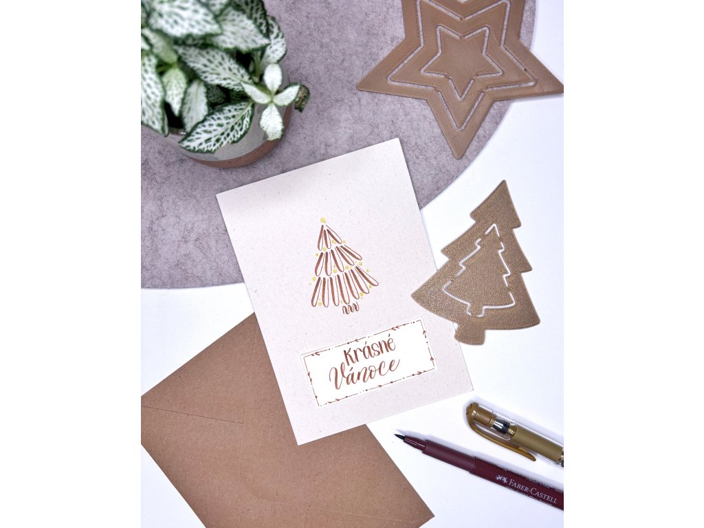 Tyto speciální vánoční šablonky stromečku a hvězdy vznikají přímo u nás – tiskneme je na 3D tiskárnách ze stejného kvalitního a odolného materiálu jako produkty TINTA. Díky tomu jsou pevné, přesné a vydrží mnoho sezón tvoření.