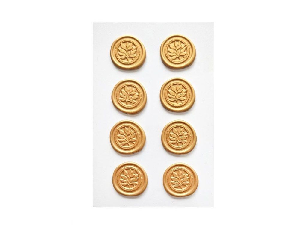 Dekorativní samolepicí voskové pečetě – Listy, zlaté, 8 ks