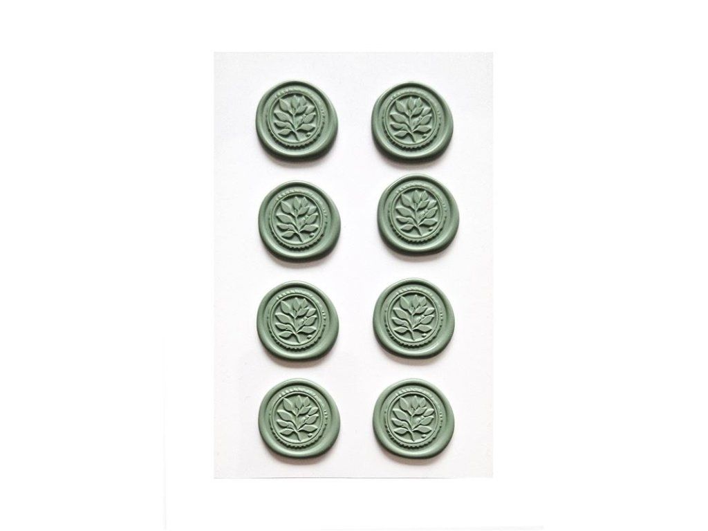 Voskové ozdobné pečetě – samolepicí Listy, šalvějově zelené, 8 ks