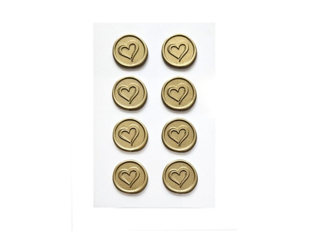 Voskové ozdobné pečetě – samolepicí srdce (8 ks) - zlatá