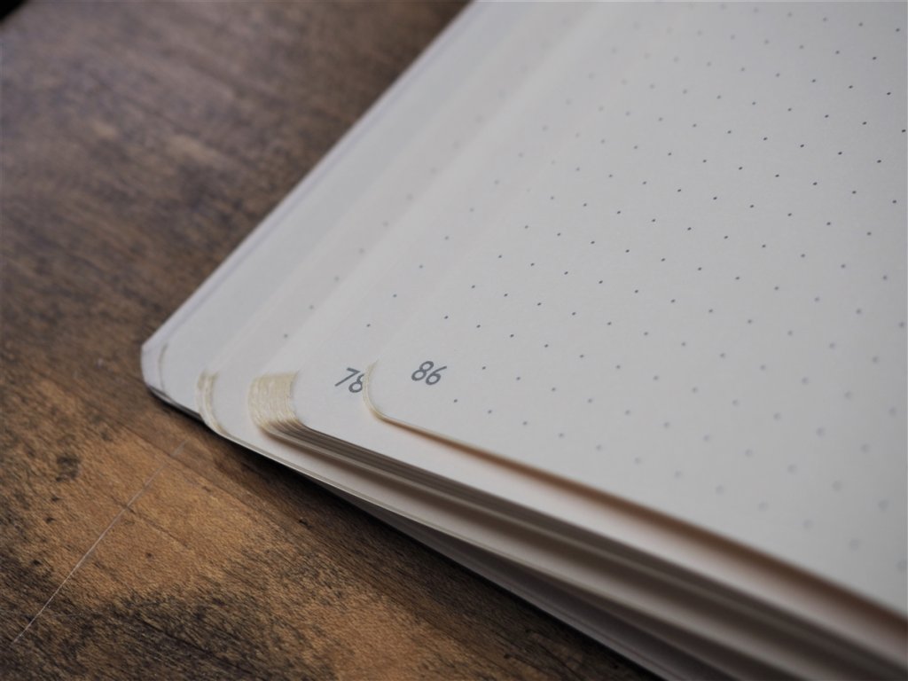 Papír o gramáži 90 g/m² má hladký, saténový povrch, takže se skvěle hodí pro psaní perem, tužkou, popisovači i brushpeny. Stránky jsou příjemně pevné, nepropíjejí a psaní po nich klouže.